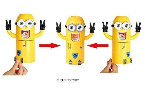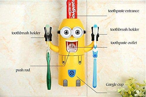 Minions Hands Free Toothpaste Automatic Toothpaste Dispenser - Toothbrush Holder Set for 2 Brushes